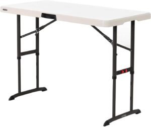 - Durability: Constructed with powder-coated steel legs and a resin top, it’s a durable folding table built for indoor outdoor use and rated for up to 400-500 lbs of distributed weight.