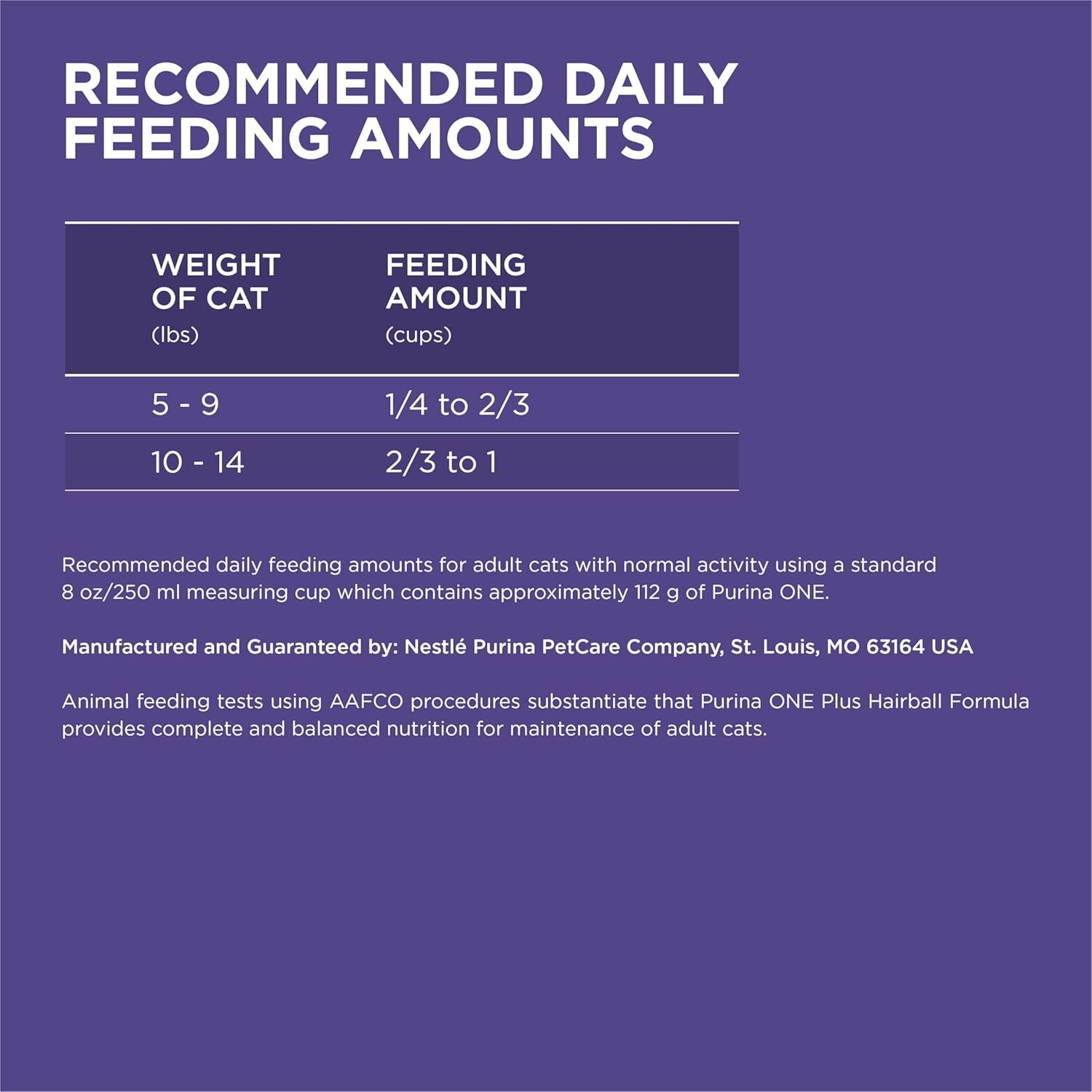 Purina ONE Natural Cat Food for Hairball Control offers a high-protein, fiber-rich formula crafted specifically to support hairball management and overall feline health. Made with real chicken as the #1 ingredient and enriched with added vitamins, minerals, and antioxidants, this tasty kibble supports strong muscles, a robust immune system, and healthy teeth and gums. Free from artificial flavors or preservatives and made in the USA, it's a delicious, natural choice trusted by Purina ONE for happy, healthy adult cats.
