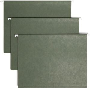• Are green hanging folders made from recycled materials? Absolutely. According to SMEAD’s product listing, each folder contains 10% recycled and 10% post-consumer content.