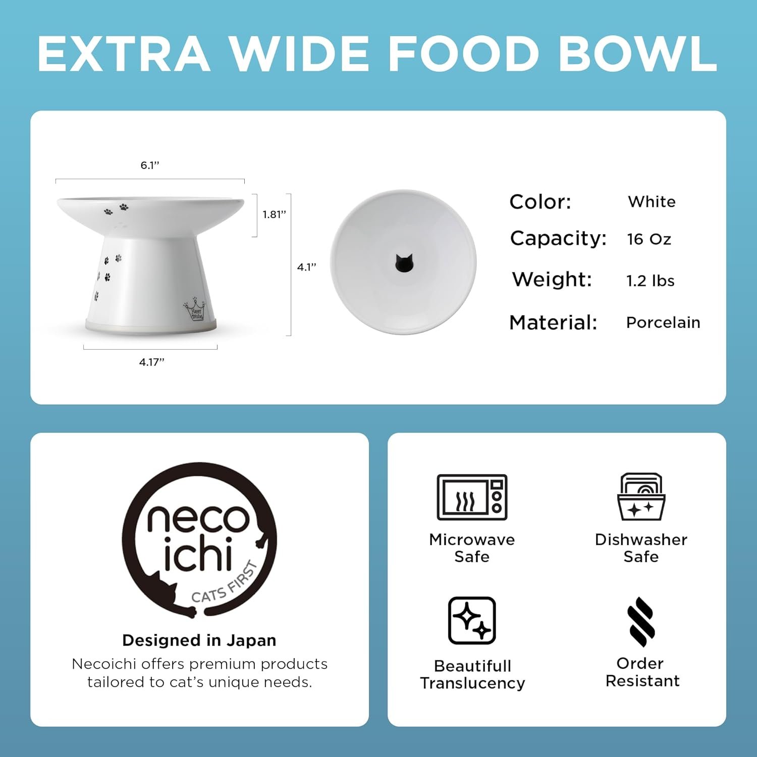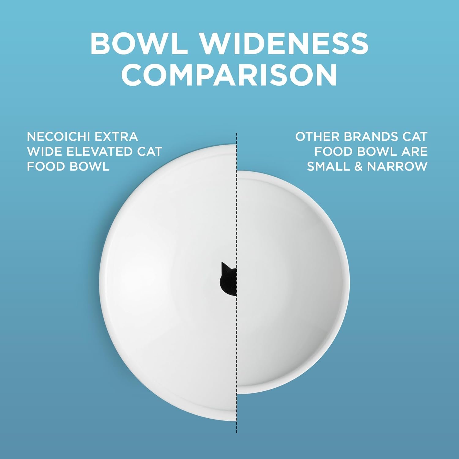 - Ergonomic cat feeder: The extra wide design reduces whisker fatigue, and the elevated height helps minimize neck strain while eating.